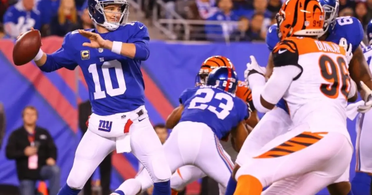 Eli Manning maakt met zijn New York Giants -vooraf gezien als een playoffkandidaat- het slechtste seizoen van zijn carrière mee. De Giants konden nog maar twee keer winnen.