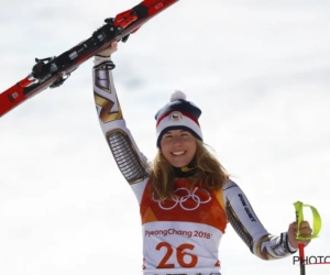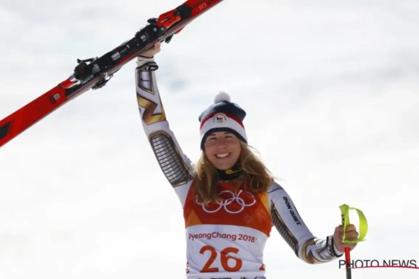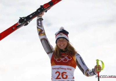 Bovendien was het zelfs niet met haar eigen ski's. Ze had een paar van Mikaela Shiffrin geleend, die paste voor de Super-G. Op de persconferentie stal ze de show door haar skibril op te houden. "Ik heb geen make-up op", klonk het.